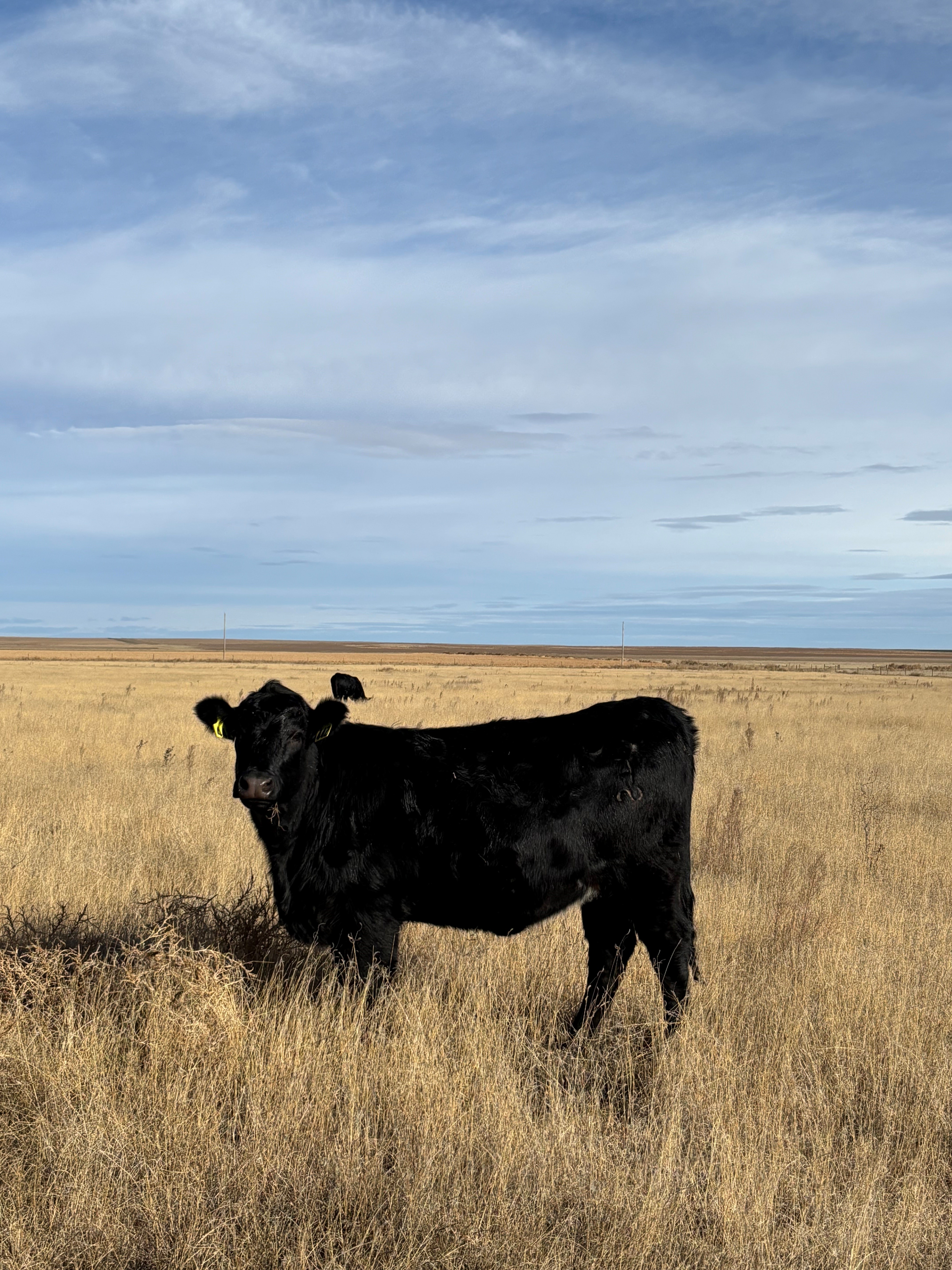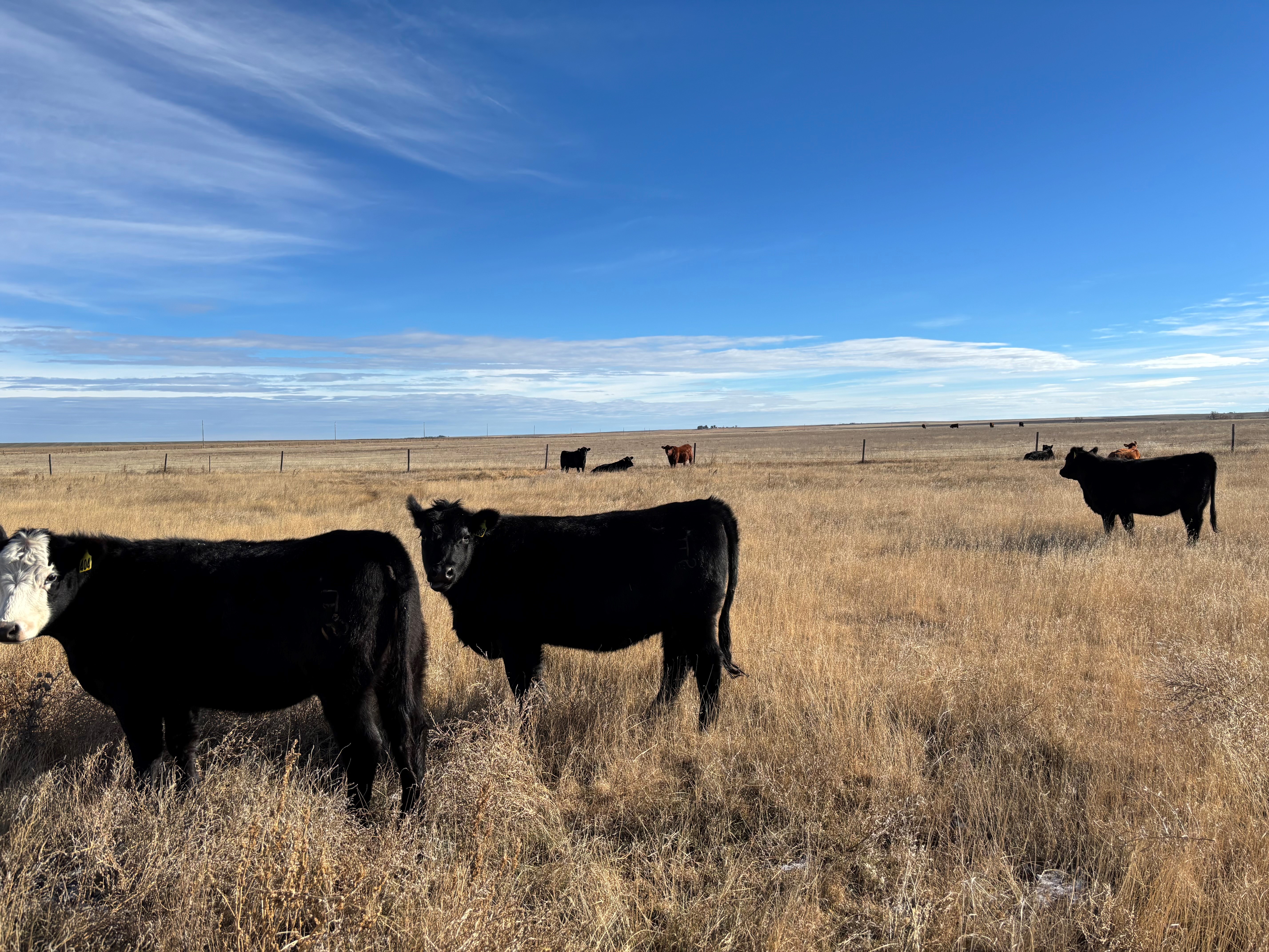 Rd Angus Strs/Hfrs 500-600#, Home Raised, coming off cows, Running on wheat pasture behind electric fence.